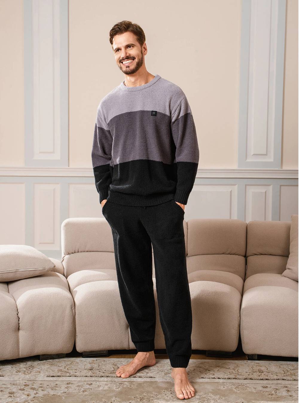 Plush Fleece Crew Neck Pajama Set